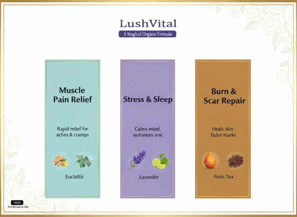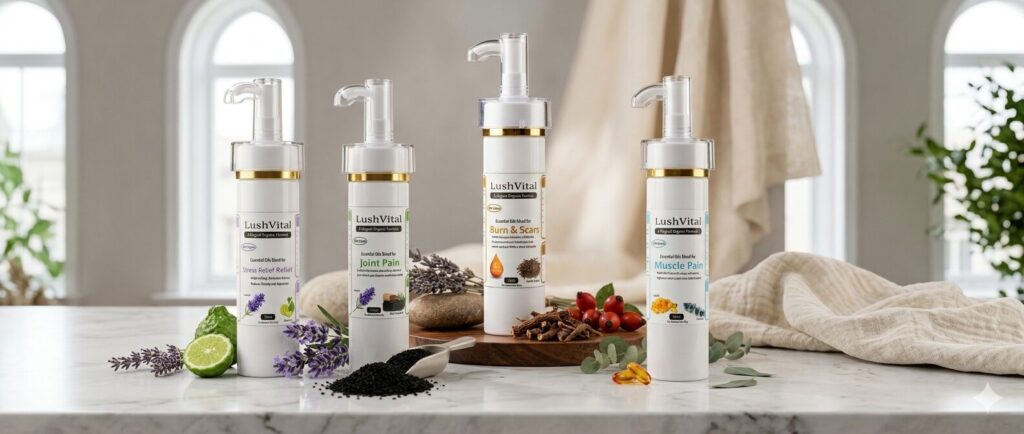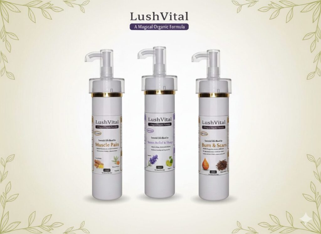 At Lush Vital, we believe true wellness begins with nature. Our 100% organic essential oil blends are carefully crafted to support your body’s natural healing—relieving pain, calming the mind, and restoring balance without harsh chemicals.
